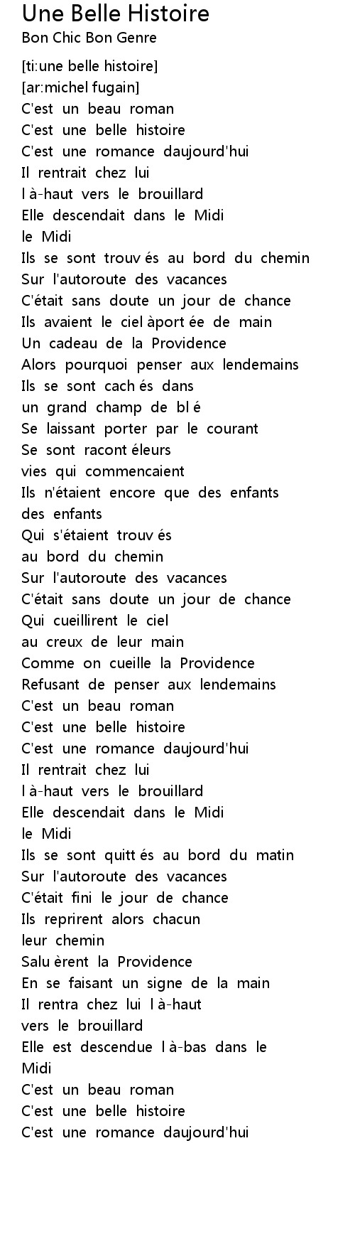 | [00:43.932] | C'e tait sans doute un jour de chance |