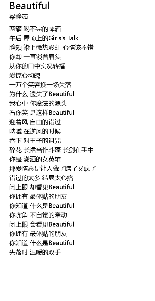 | [00:57.670] | 为什么 遗失了Beautiful |