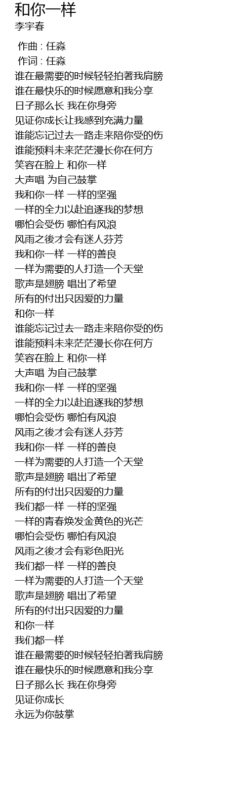 | [04:18.52] | 和你一样 |