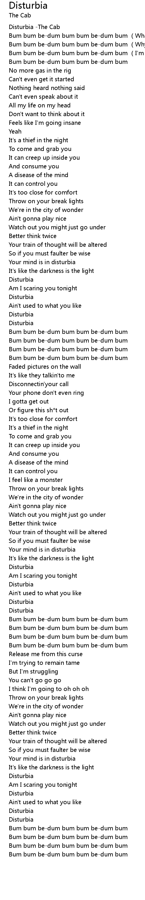 | [00:06.241] | Bum bum bedum bum bum bedum bum What' s wrong with me |