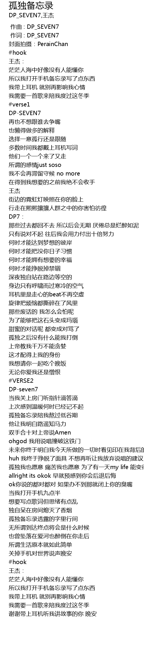 | [00:01.000] | 作词 : DP_SEVEN7 |