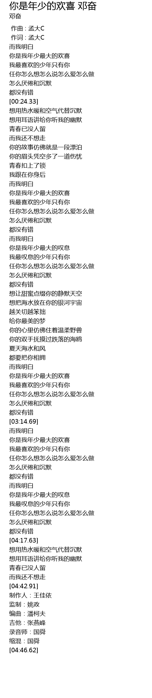 | [03:35.94] | 你是我年少最大的欢喜 |