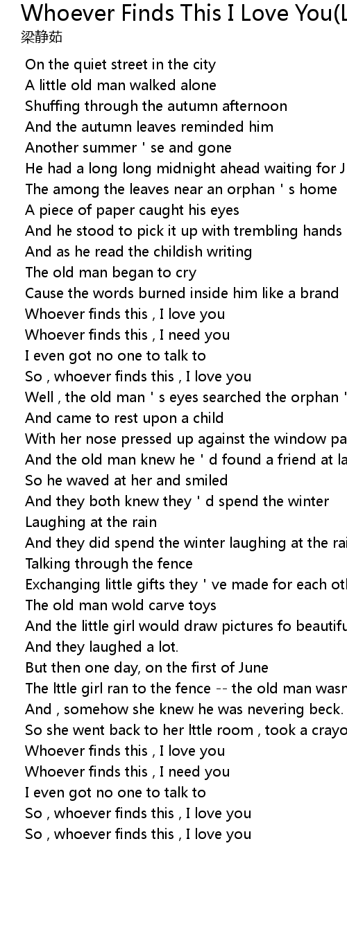 | [02:55.10] | Well , the old man's eyes searched the orphan's home |