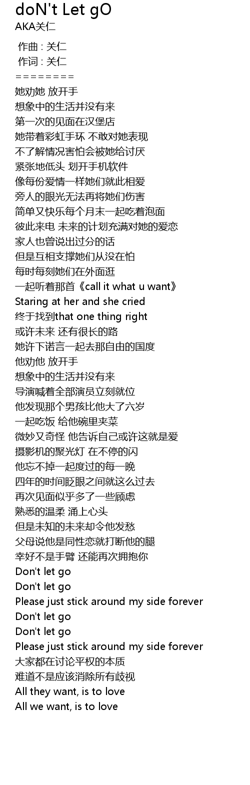 | [01:35.860] | Don' t let go |