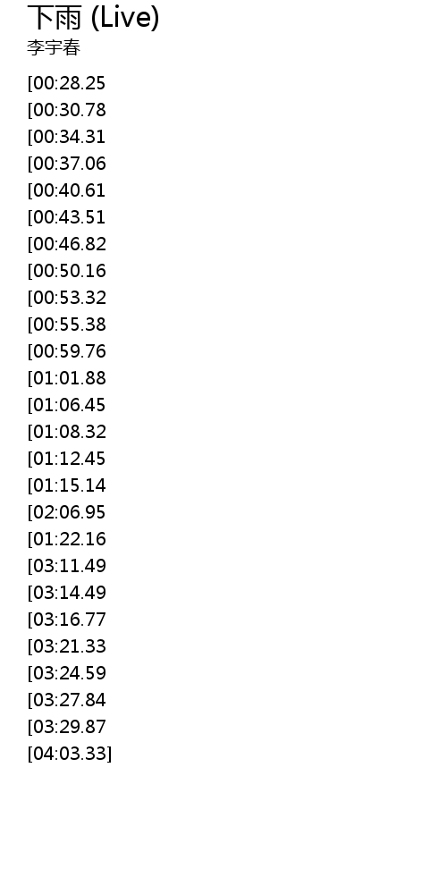 | [03:47.30][03:21.33][01:34.41] | 突然之间一场大雨 |