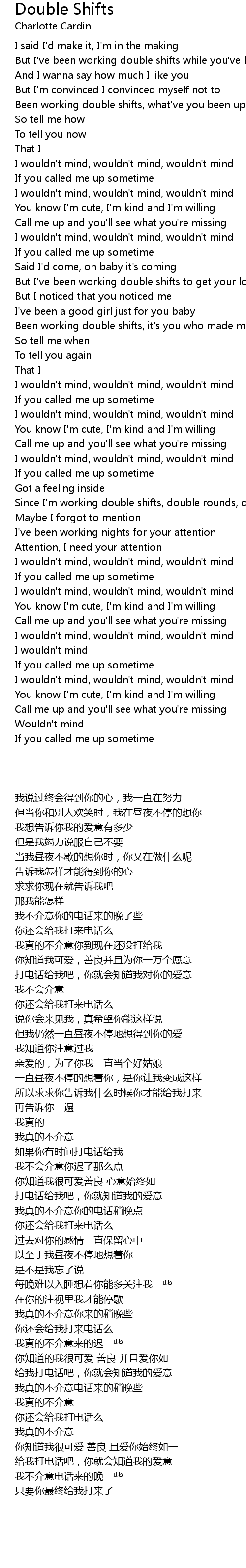 [02:15.20] Since I'm working double shifts, double rounds, double time