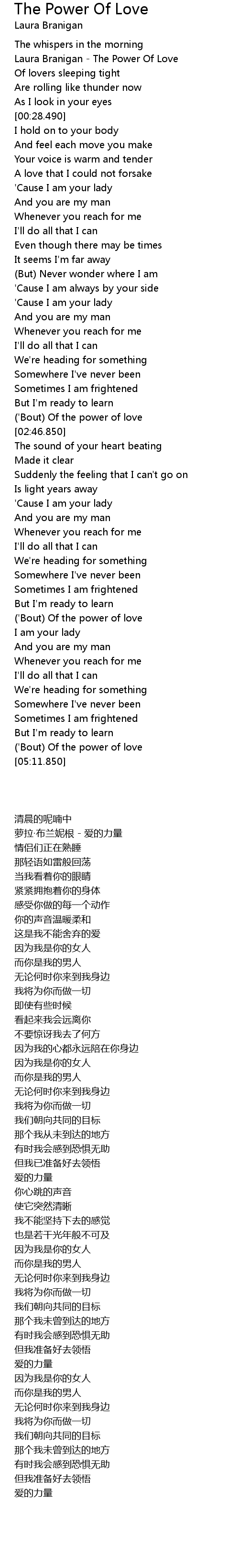 | [00:02.200] | Laura Branigan The Power Of Love |