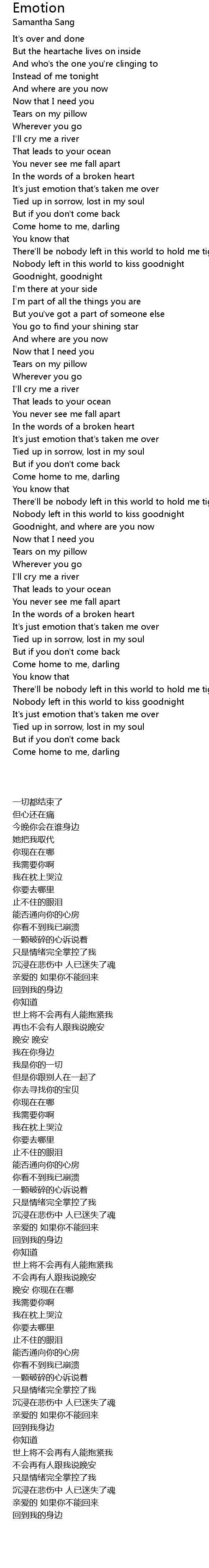 It's just emotion that's taken me over |
