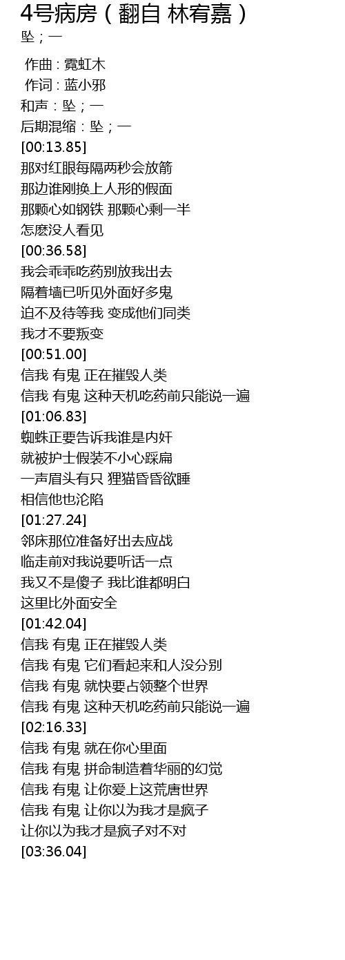 | [00:36.92] | 我会乖乖吃药别放我出去 |
