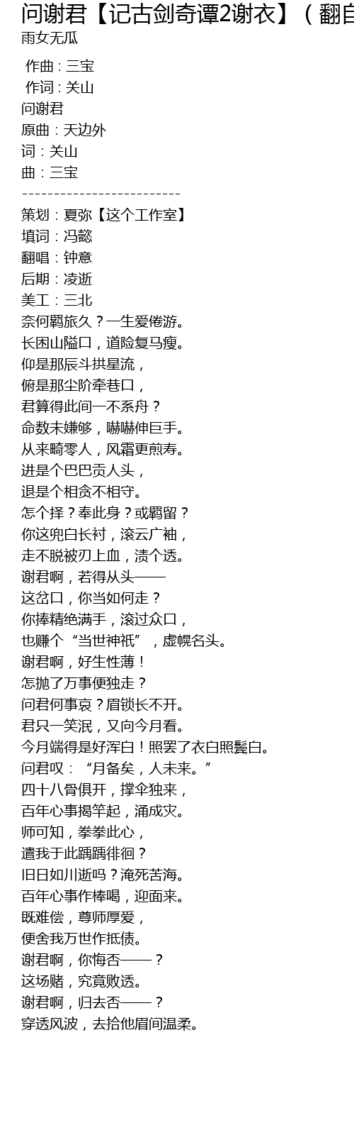 | [02:21.43] | wèn jūn tàn:" yuè bèi yǐ, rén wèi lái." |