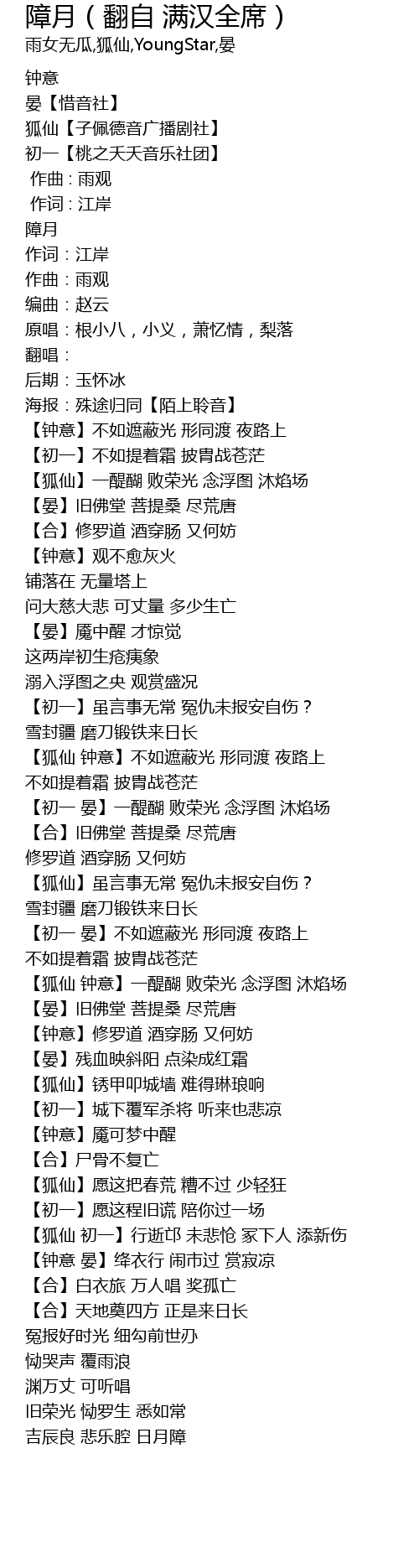 | [02:45.50] | 【初一 晏】不如遮蔽光 形同渡 夜路上 |