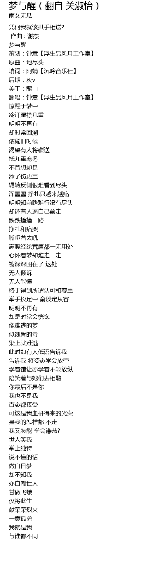 | [00:02.12] | 梦与醒 |