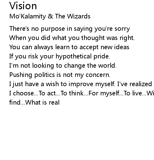 | I choose...To act...To think...For myself...To live...With no regrets...And to find...What is real |
