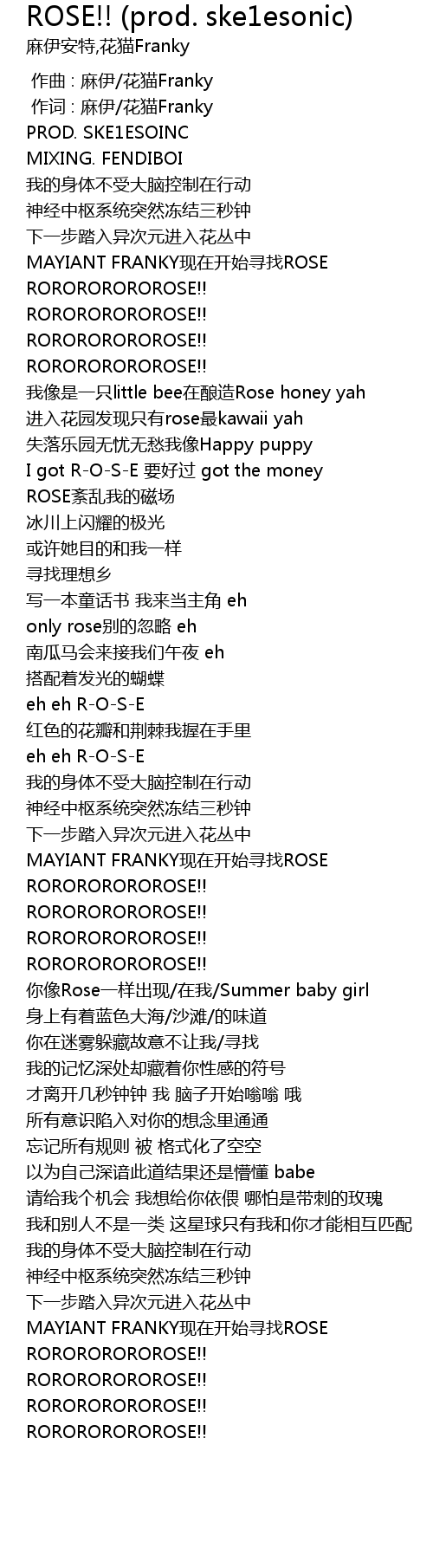 | [00:21.90] | MAYIANT FRANKY现在开始寻找ROSE |