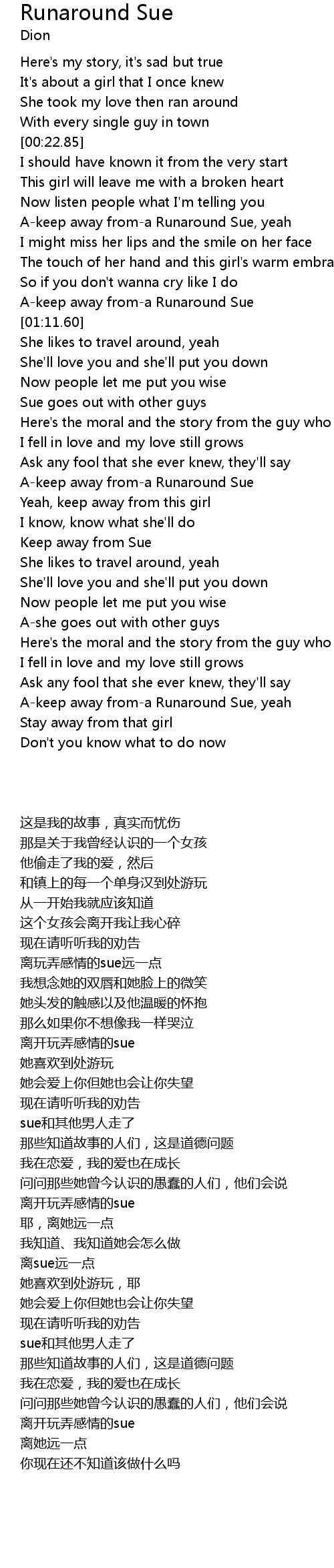 | [01:44.96] | A-keep away from-a Runaround Sue |