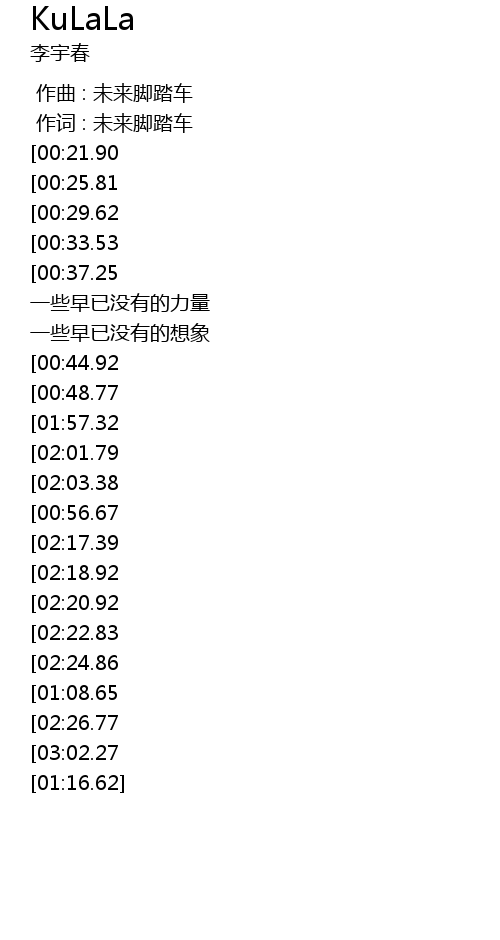 | [02:56.05][02:24.86][01:06.74] | Kulala哗拉拉拉 |
