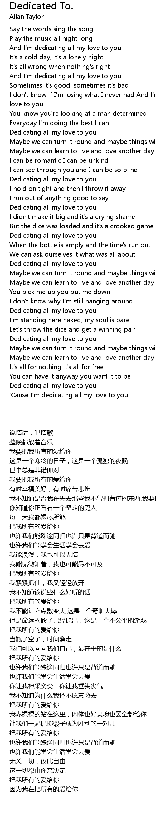 I don't know if I'm losing what I never had And I'm dedicating all my love to you |