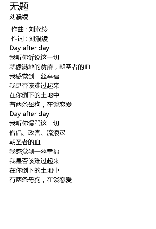 | [03:25.825] | 有两条母狗,在谈恋爱 |