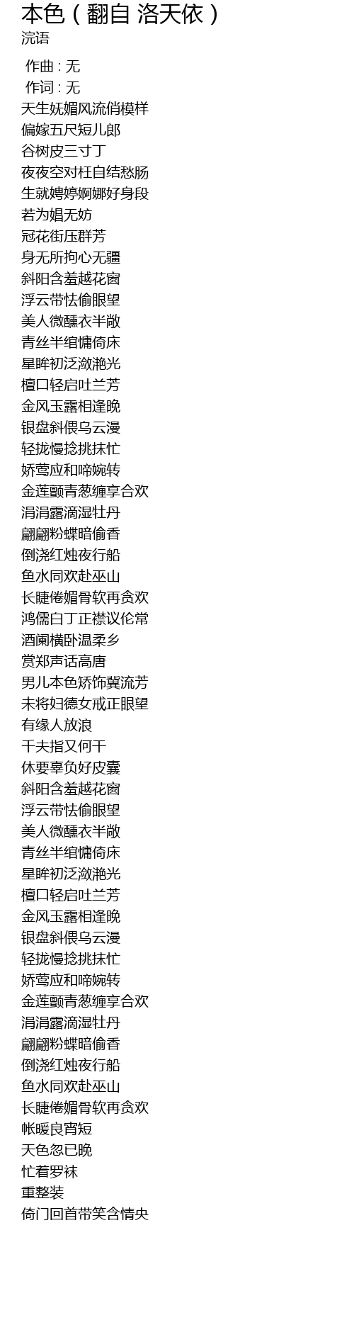 | [00:40.949] | 天生妩媚风流俏模样 |