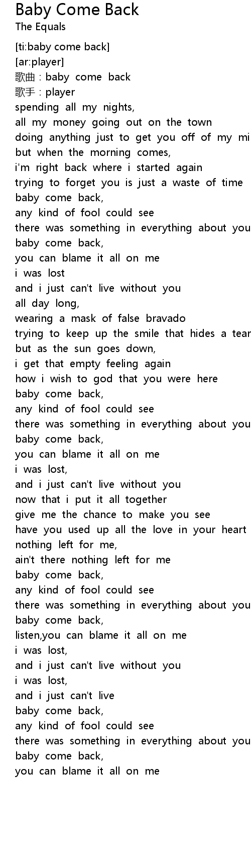 | [00:50.378] | baby come back, |