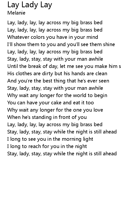 Lay, lady, lay, lay across my big brass bed |