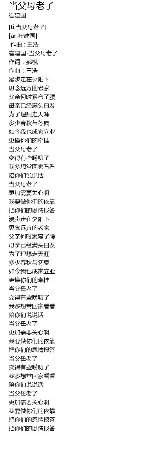 | [02:50.137] | dāng fù mǔ lǎo le |