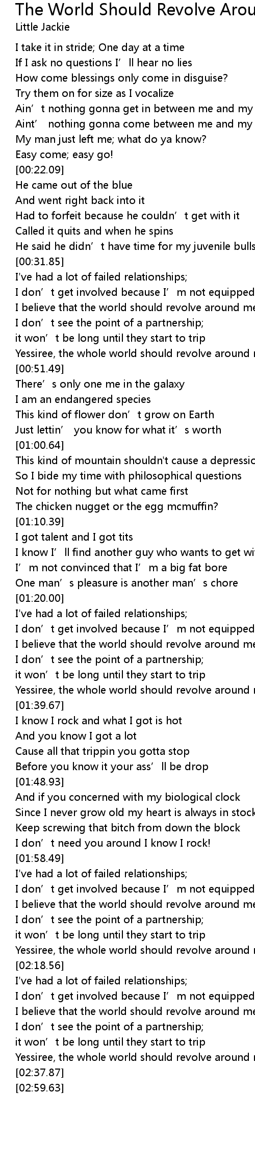 | [02:22.83] | I believe that the world should revolve around me! |