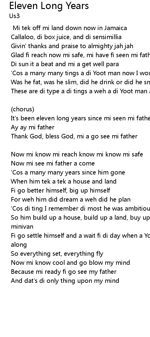 Glad fi reach now mi safe, mi have fi seen mi father |