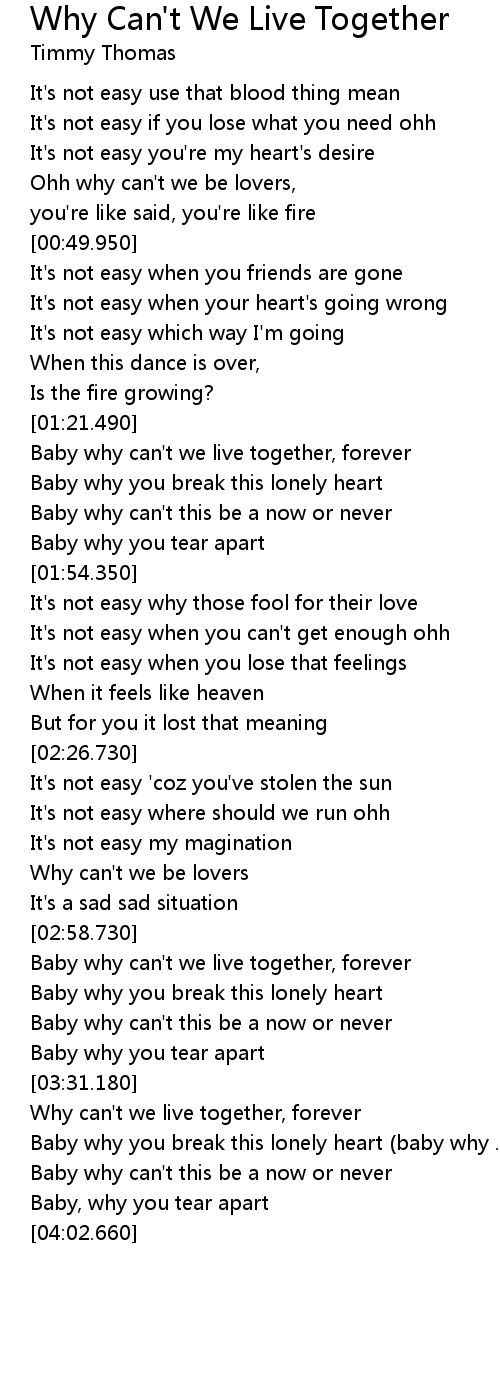 | [00:42.440] | Ohh why can' t we be lovers, |