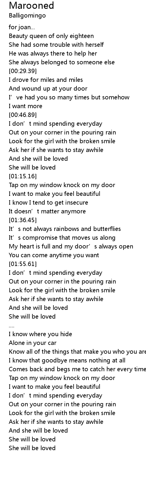 | [03:16.61] | Look for the girl with the broken smile |