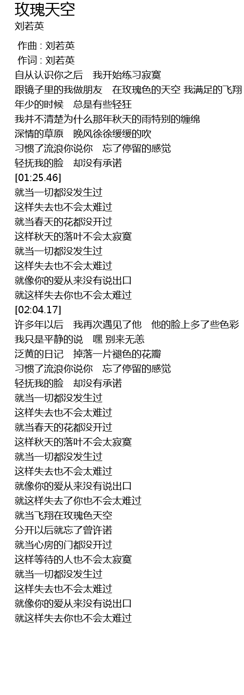| [00:00.00] | 作曲 : 刘若英 |