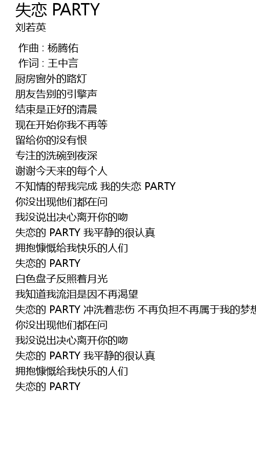 | [01:35.59] | 失恋的 PARTY 我平静的很认真 |