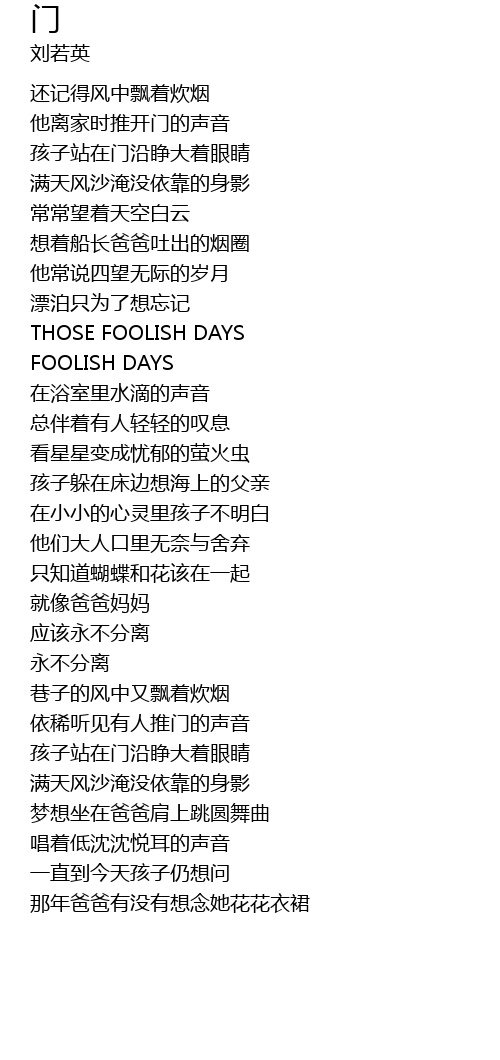 | [00:40.30] | tā lí jiā shí tuī kāi mén de shēng yīn |