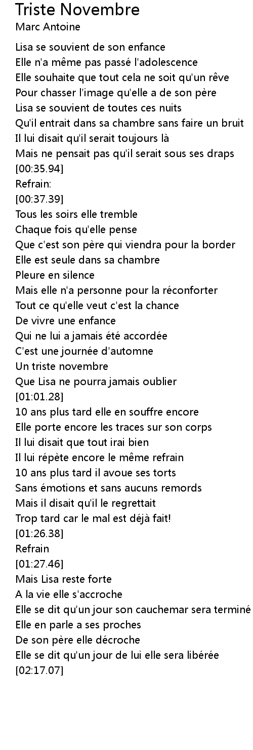 | [00:28.25] | Qu'il entrait dans sa chambre sans faire un bruit |
