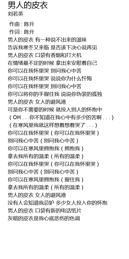 | [00:55.07] | 男人的皮衣 有一种说不出来的滋味 |