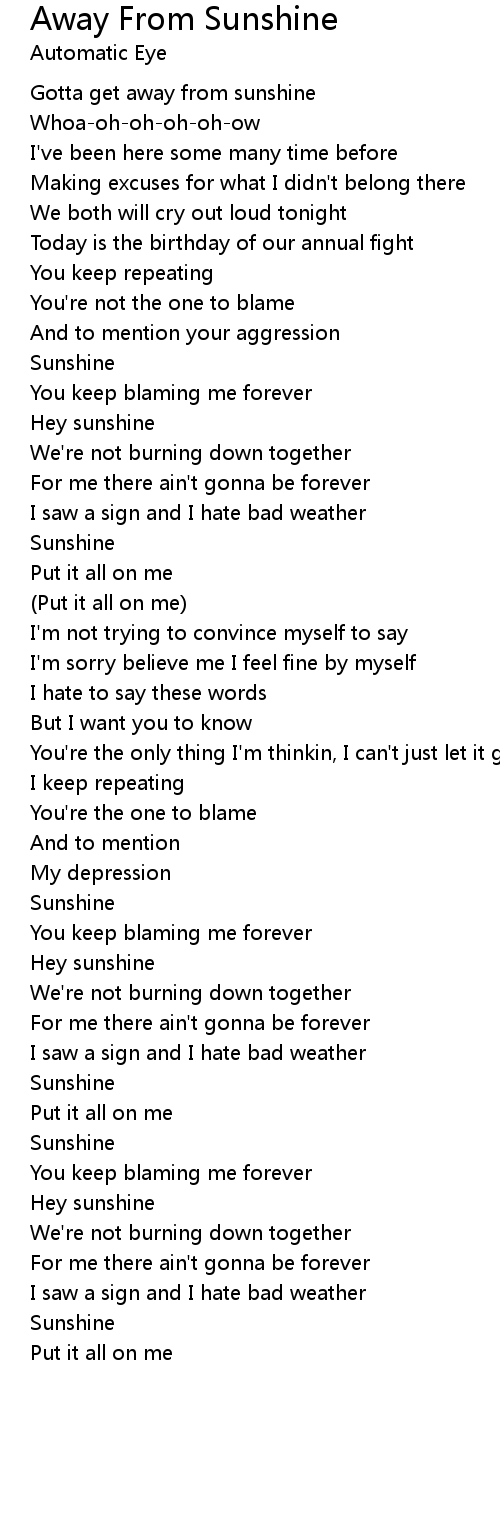 Gotta get away from sunshine |