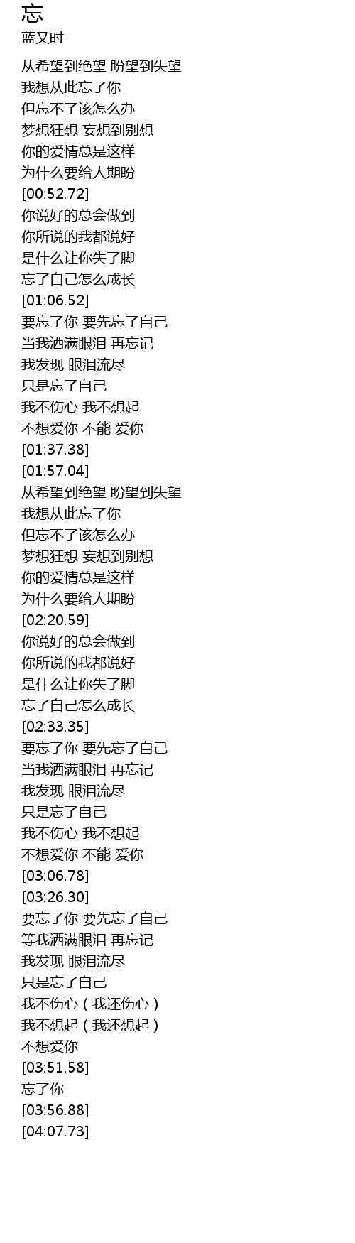 | [03:53.44] | 忘了你 |