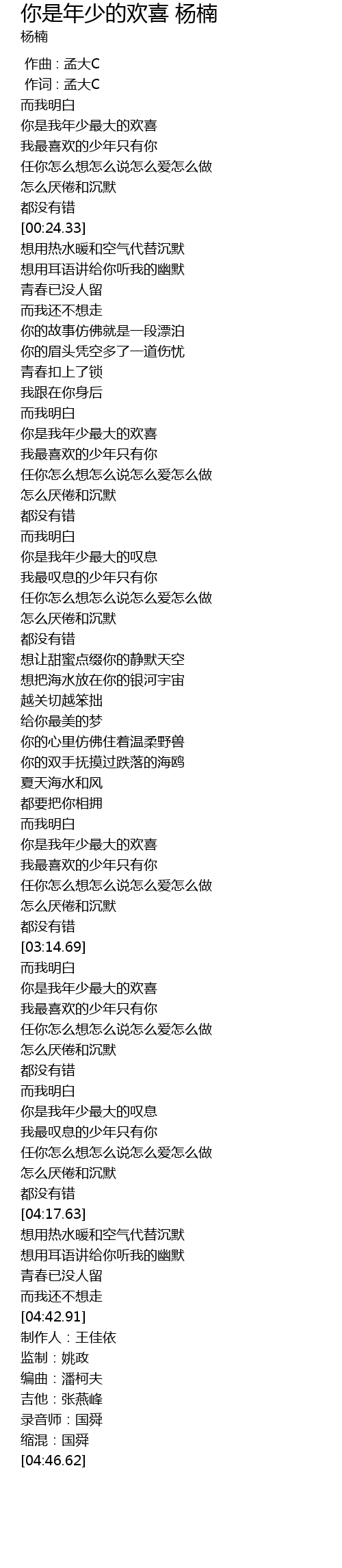 | [03:35.94] | 你是我年少最大的欢喜 |