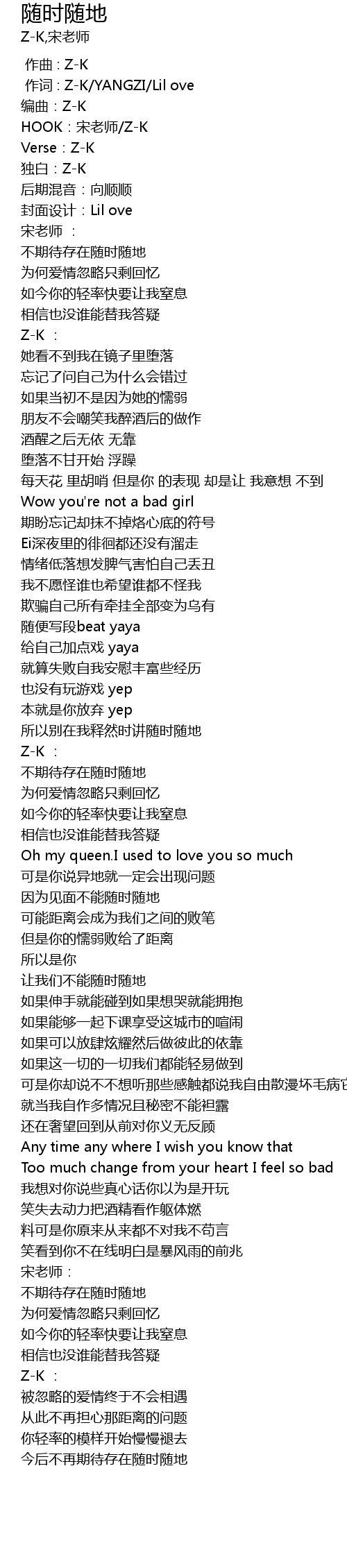 | [00:00.592] | 作词 : Z-K/YANGZI/Lil ove |