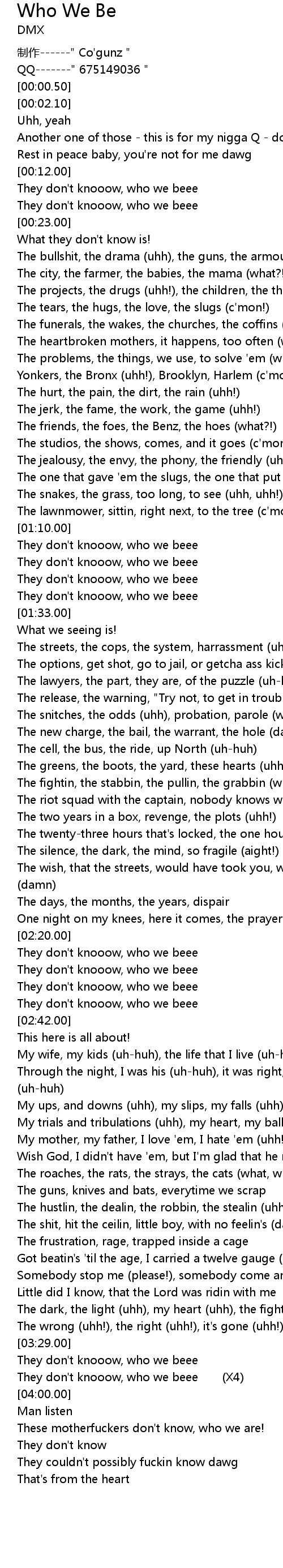 | [04:05.40] | These motherfuckers don't know, who we are! |