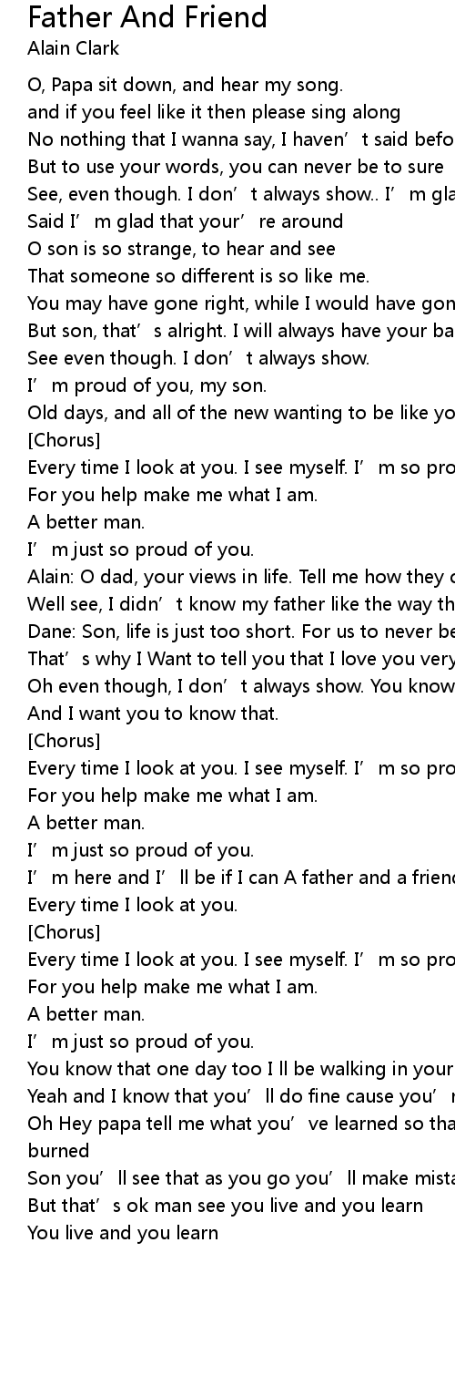| Yeah and I know that you' ll do fine cause you' re a son of mine | |