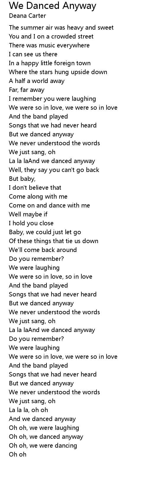 Oh oh, we danced anyway |