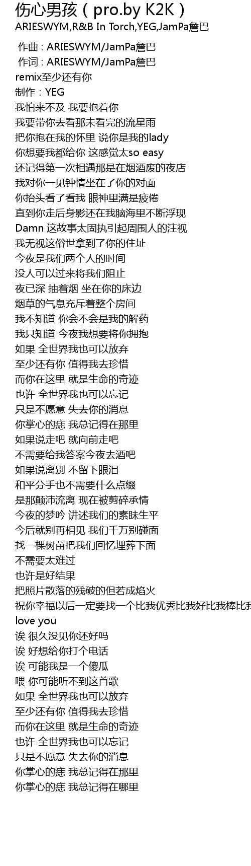 | [00:01.000] | 作词 : ARIESWYM/JamPa詹巴 |