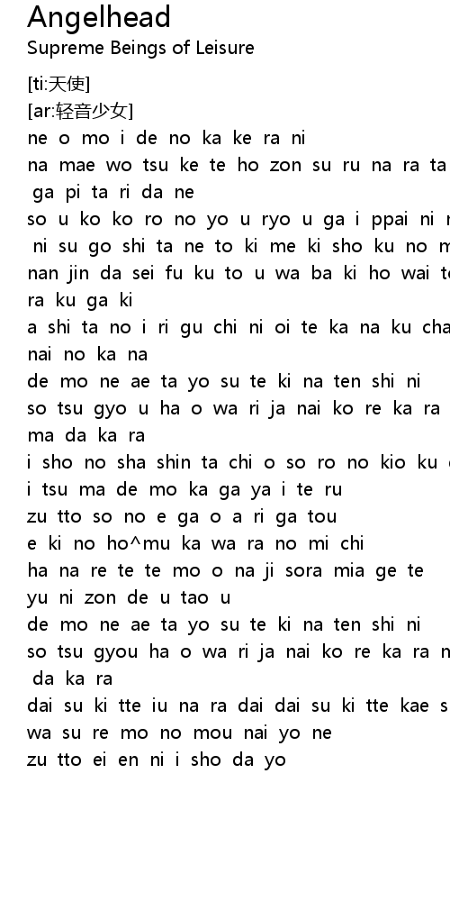| [03:21.717] | de mo ne ae ta yo su te ki na ten shi ni |