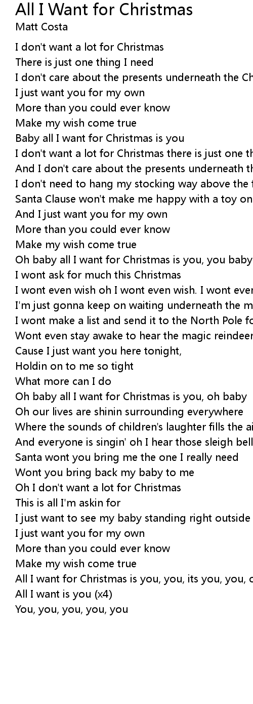 I wont even wish oh I wont even wish. I wont even wish for snow. |