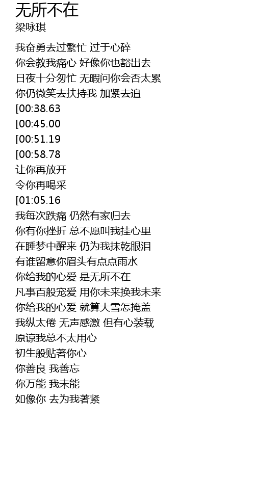 | [02:39.94][00:38.63] | 你给我的心爱 是无所不在 |