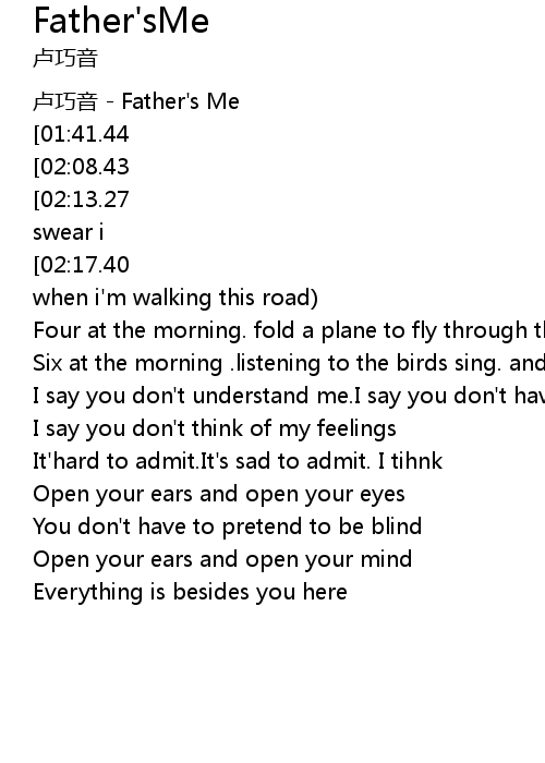 | [00:19.59] | lú qiǎo yīn Father' s Me |