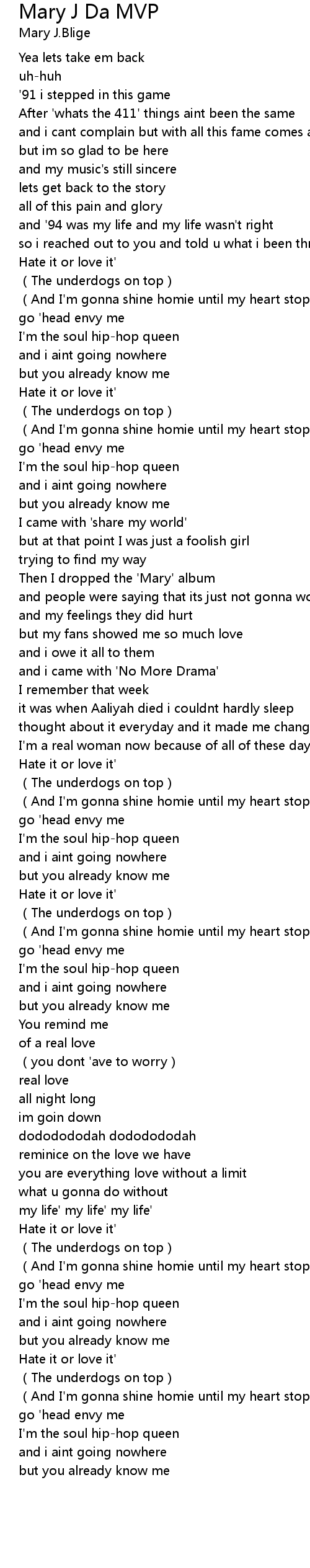 | Song | Mary J Da MVP |