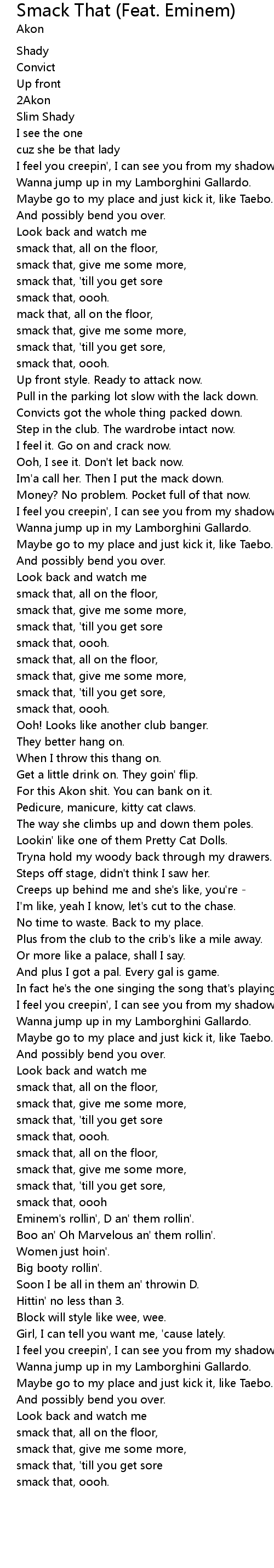 smack that, all on the floor, |