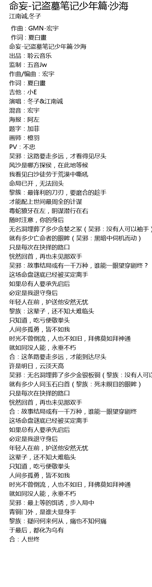 | [00:00.00] | 命妄-记盗墓笔记少年篇·沙海 |